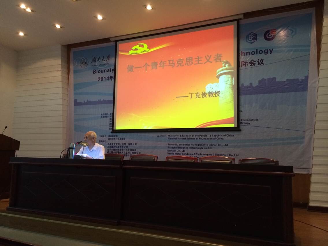 讲座开始之前,陈义红副书记首先向大家介绍了丁克俊教授。丁克俊教授长期致力于学校关心下一代工作,历任校关工委副主任、顾问。多年来坚持把关心下一代政治思想的健康成长作为一项事业来做,作为一门学问来研究。多次被省教育厅、省关工委评为关心下一代工作先进工作者;2010年获全国教育系统关心下一代先进个人;2014年被评为长沙市“雷锋式道德模范”。随后丁老开始了时长两个小时的讲座。丁老以简明扼要的语言向大家讲解什么是马克思主义、为什么要坚定地树立起对Communism、对International一定会实现的理想信念。丁老劝诫大家要认真的读一读经典著作,学一学马克思主义的精髓。丁老对广大青年学生中缺少坚定的马克思主义者感到十分遗憾,并且对学生中经常出现的“再不疯狂我们就老了”之类的话语感到不满。丁老说,都是二十多岁的年轻人,说什么老不老。丁老为讲座准备了多本资料,期间一直侃侃而谈,旁征博引,精彩的讲解不时赢来同学们阵阵掌声,大家都为丁老的博学和人格魅力所深深的折服。