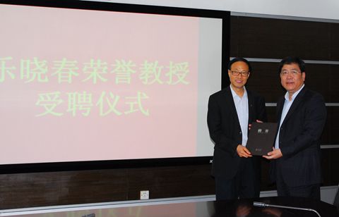 荣誉教授的聘任仪式在校办公楼二会议室举行,校长赵跃宇为乐晓春院士颁发聘书并进行了亲切交谈。当日上午,乐晓春院士还作了题为“DNA and protein binding assays”的学术报告,并与 哔咔官网