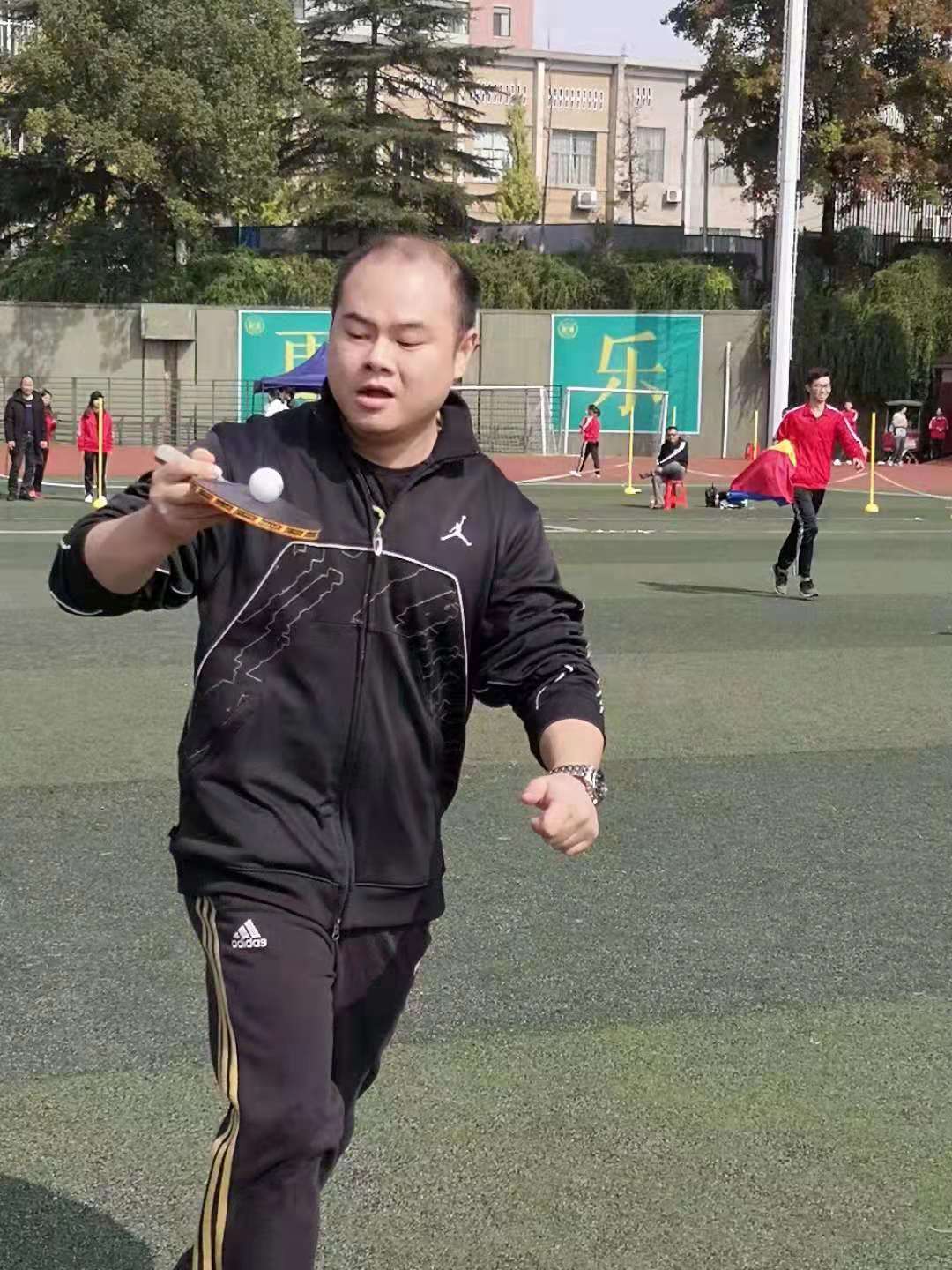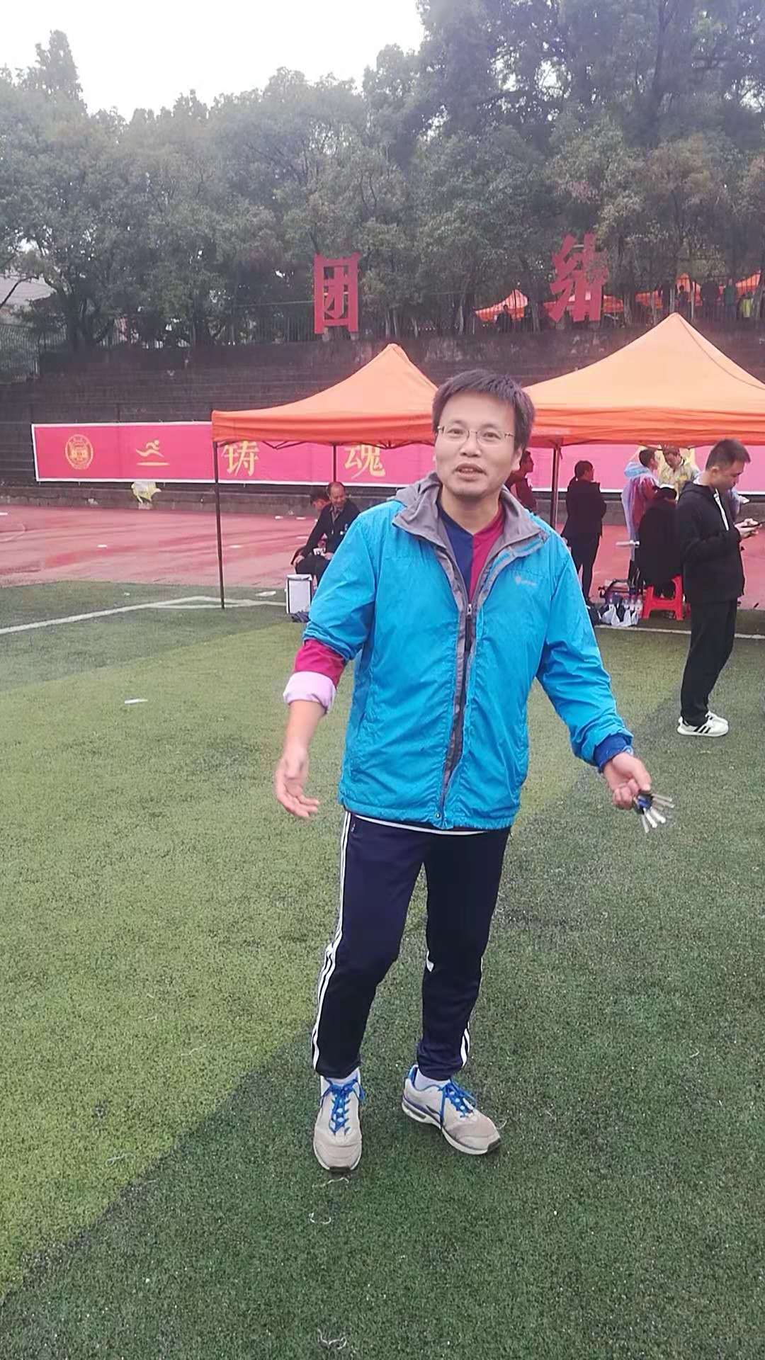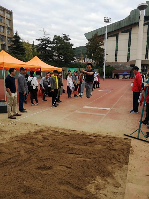 朱建老师获得男子甲方组100米第三名和男子甲组跳远第五名
