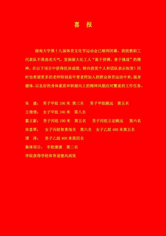 教职工代表队不畏恶劣天气,发扬湖大化工人“敢于拼搏,勇于挑战”的精神,在比赛中获得优异成绩,同时获得学校的体育道德风尚奖。