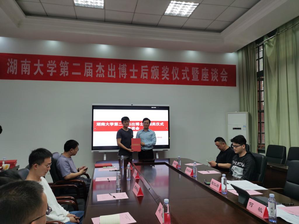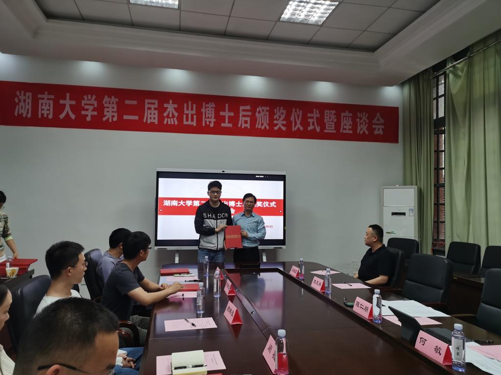 5月6日下午, 哔咔官网 举行第二届杰出博士后颁奖仪式暨座谈会。全校共有17人荣获 哔咔官网 第二届杰出博士后称号,我院熊梦仪、任天兵、彭瑞资三位博士后入选。校长助理、人力资源处处长陈仁朋参加座谈。