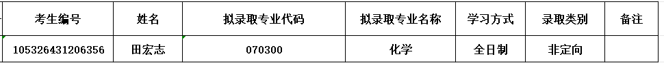 硕士招生指标调整,化学专业增加一个招生计划,按照《化学化工学院2026年硕士研究生招生复试录取工作实施细则》,经学院党政联席会议审定,按照硕士招生考试总成绩依次录取下一位,名单如下: