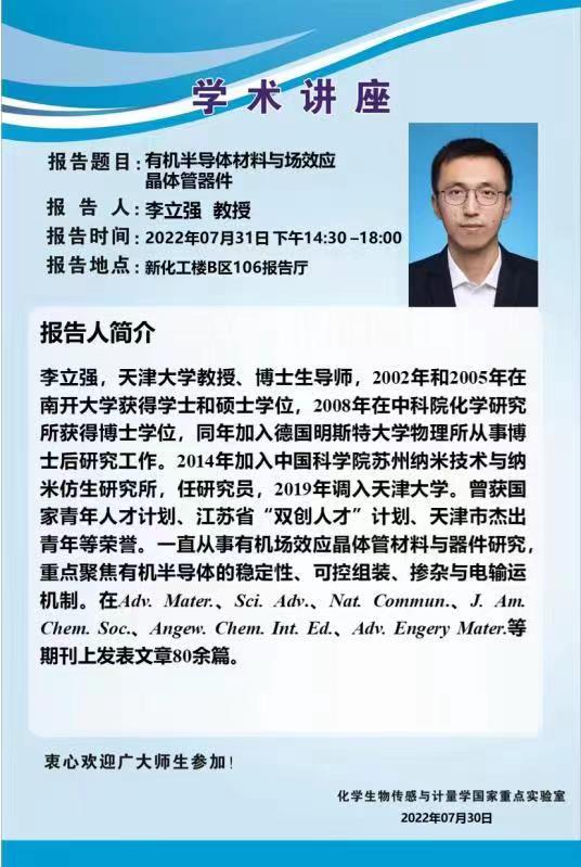 2022年7月31日天津大学李立强教授学术报告会