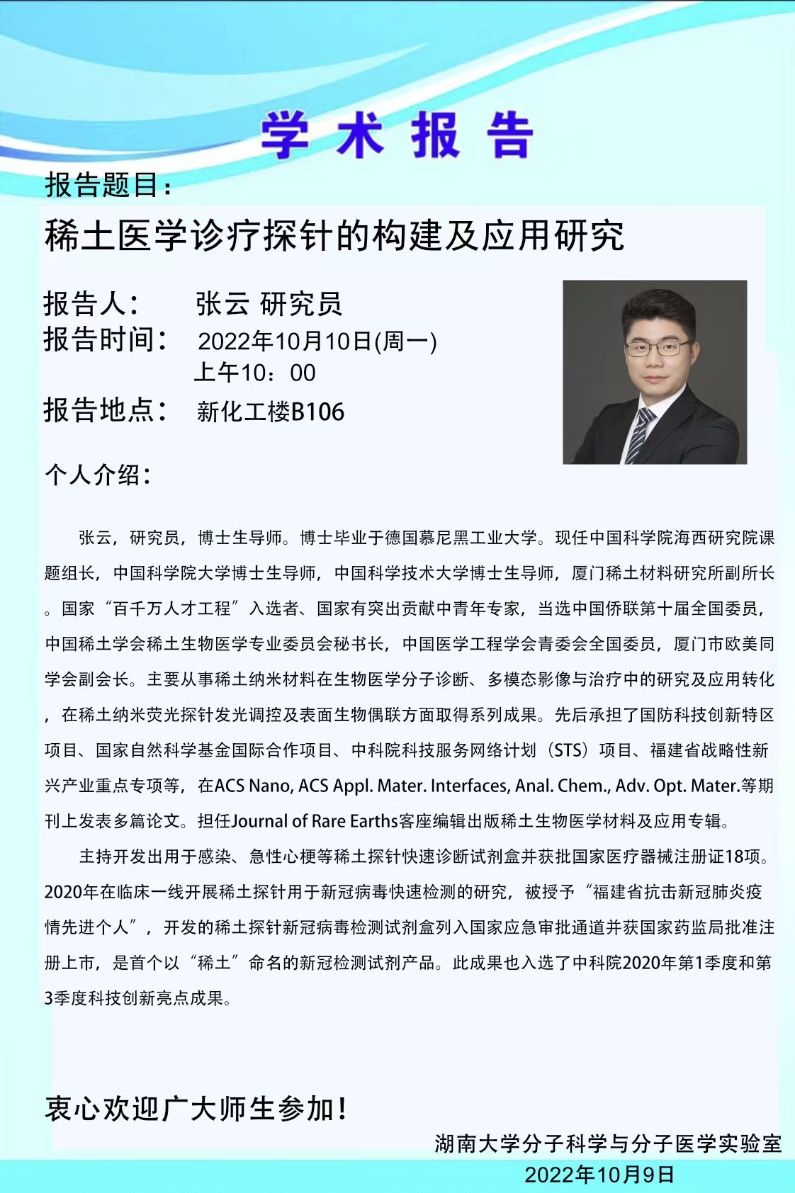 2022年10月10日中国科学院海西研究院张云研究员学术报告会