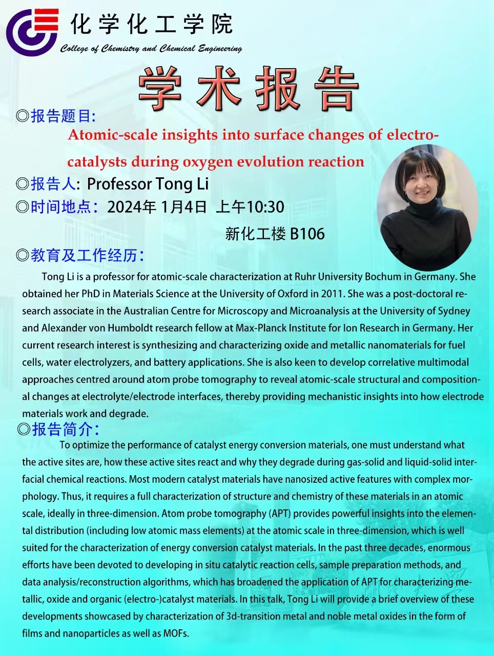 2024年1月4日Professor Tong Li学术报告会