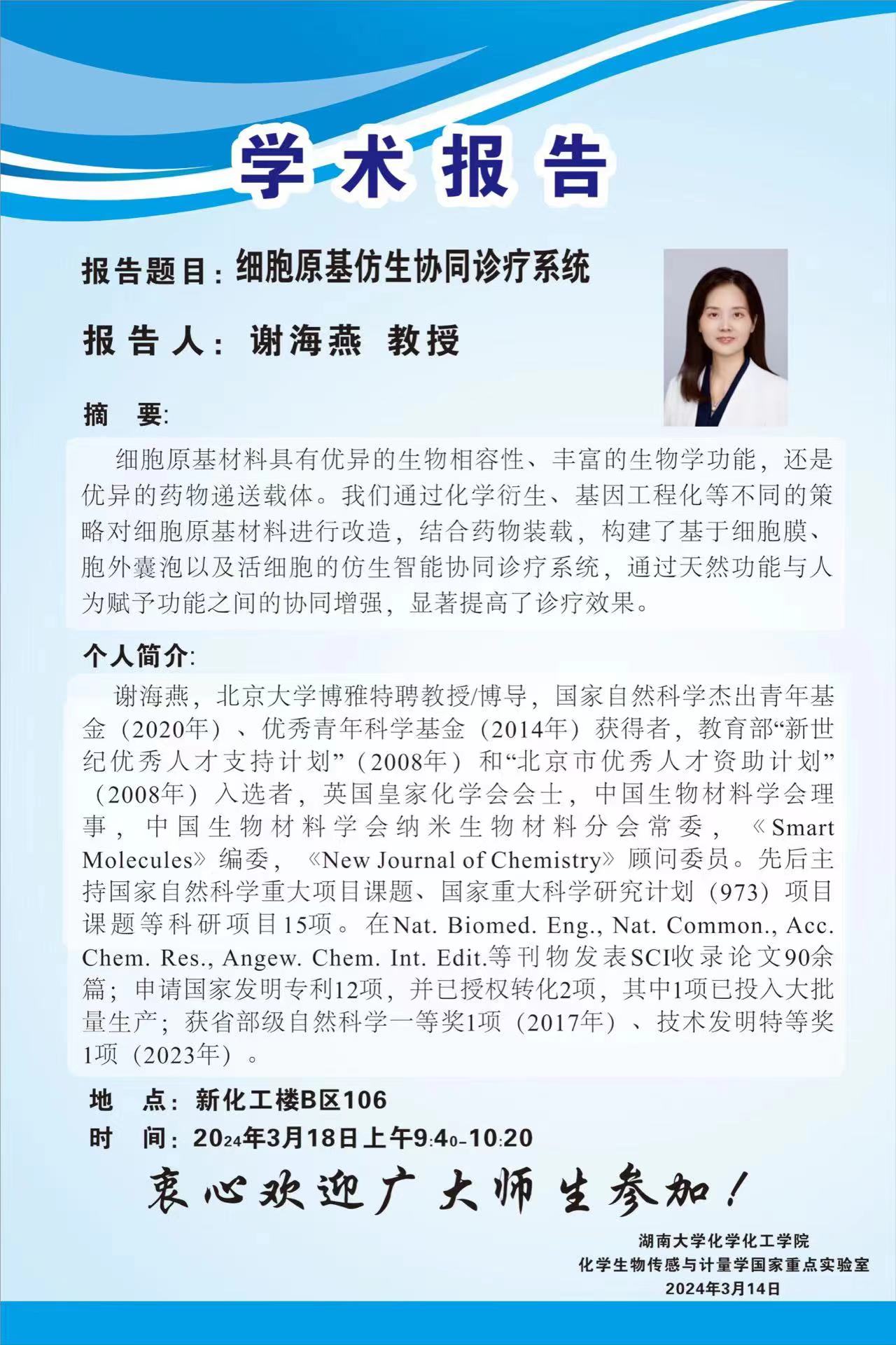 2024年3月18日北京大学谢海燕教授学术报告会