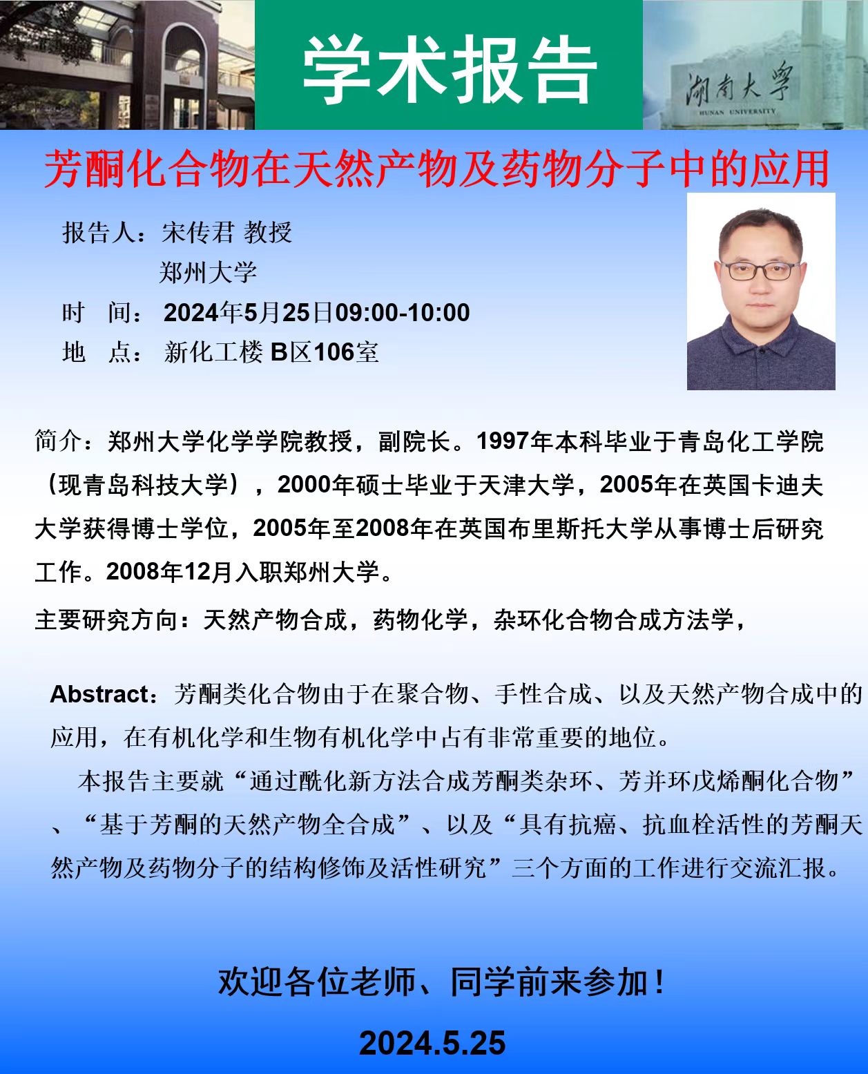 2024年5月25日郑州大学宋传君教授学术报告会