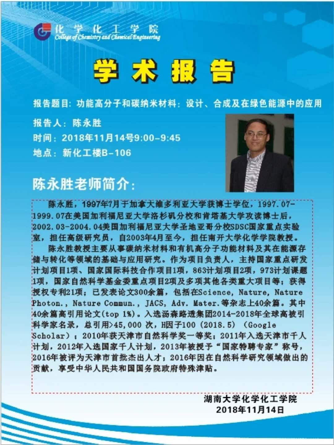 2018年11月14日南开大学陈永胜教授学术报告会