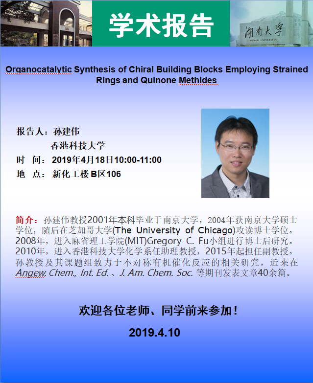 2019年4月18日香港科技大学孙建伟教授学术报告会