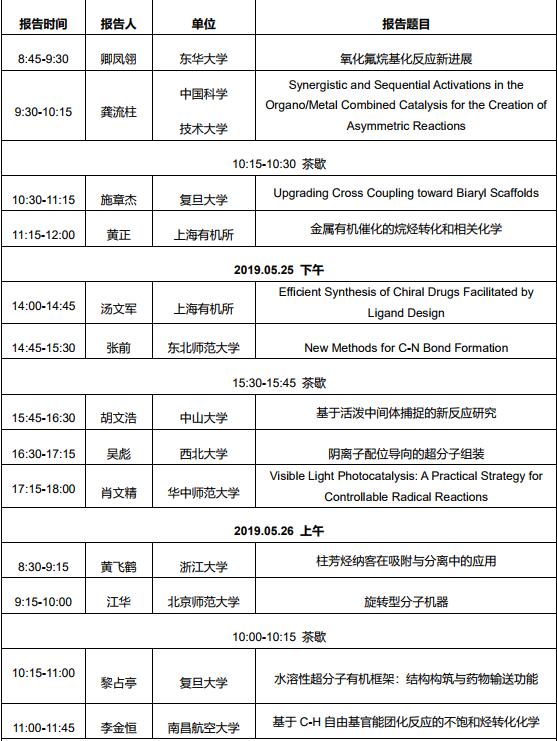 2019年5月25-26日 哔咔官网 有机化学前沿论坛