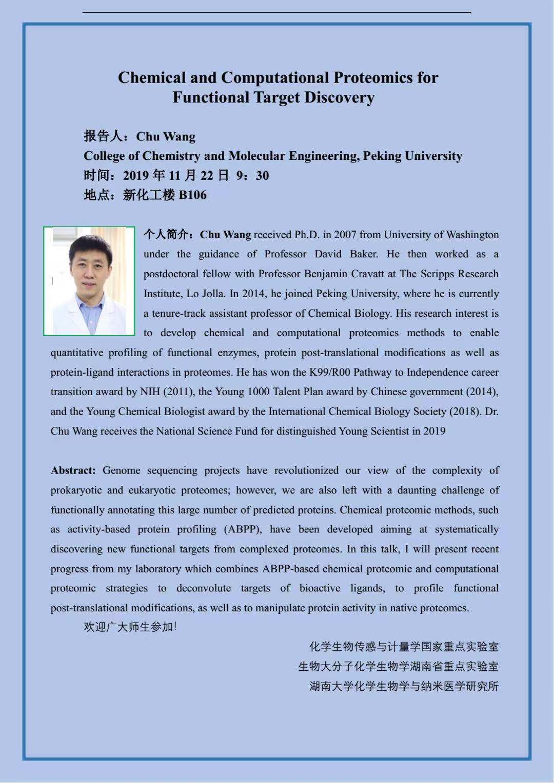 2019年11月22日北京大学Chu Wang教授学术报告会