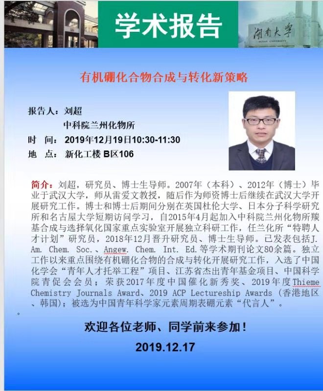 2019年12月19日中科院兰州化物所刘超研究员学术报告会