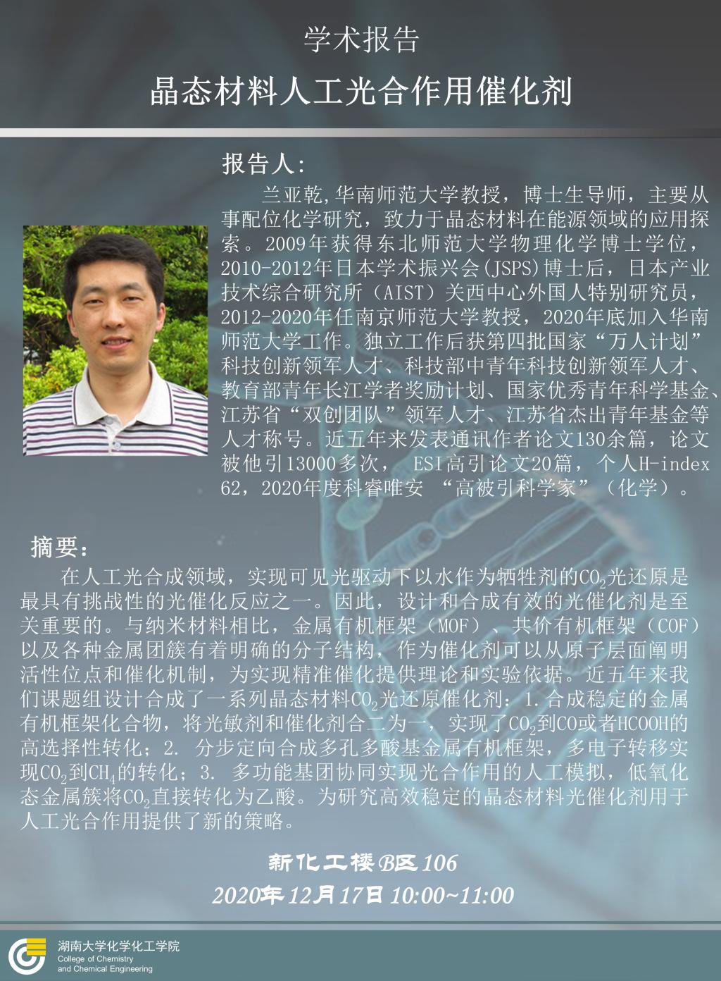 2020年12月17日华南师范大学兰亚乾教授学术报告会