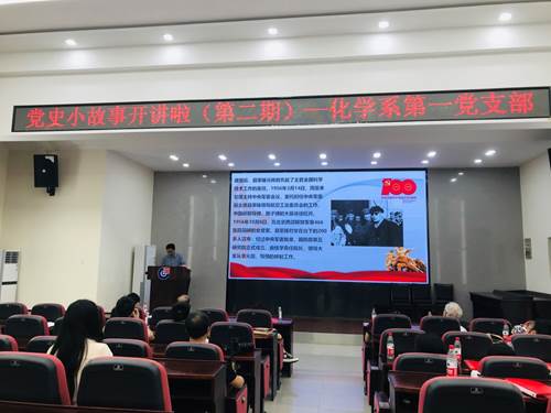 68日下午,化学系第一党支部在新化工楼D区报告厅开展迎接建党100周年党史知识学习教育活动--“党史小故事开讲啦”,会议由支部委员杨鹏老师主持。
